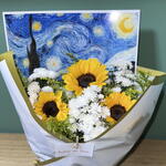 Este bouquet exclusivo é o epítome da beleza e da arte, composto por três Girassóis de Van Gogh singulares, acompanhados por uma elegante folhagem especial. Cada detalhe nesta composição foi pensado com cuidado, incluindo uma encantadora representação artística de um dos desenhos de Van Gogh. O bouquet é delicadamente acondicionado numa requintada embalagem e atado com um laço sofisticado para acentuar ainda mais a sua estética. Este é não só um presente floral, mas também uma peça de arte.