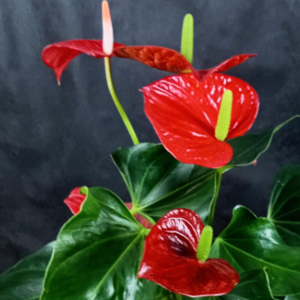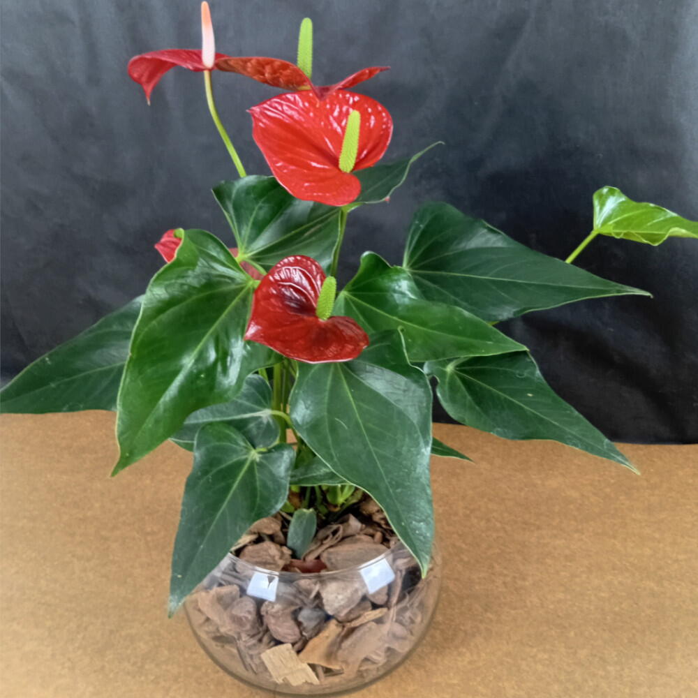 anturio plantado - 1 un. vidro aquário - 1 un. casca de pinus - 1 un.