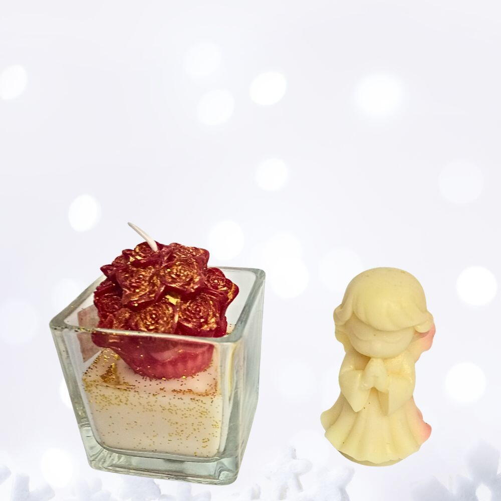 Procurando um presente que marca presença? Este é um presente que oferece beleza visual à experiência sensorial. Esta é a sua escolha perfeita. Diferente dos arranjos tradicionais que murcham, este item combina a durabilidade das flores permanentes com o toque especial sensorial de aromas importados, um 1 CASTIÇAL VIDRO TRANSPARENTE COM CERA DE COCO E SOJA AROMATIZADA COM ESSÊNCIA PREMIUM COM MINI BUQUE E 1 ANJO DE CERA AROMÁTICA COM CERA DE COCO E SOJA AROMATIZADA COM ESSÊNCIA PREMIUM (wax melts)