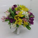 Este conjunto encantador consiste em 10 astromérias coloridas cuidadosamente organizadas em um estiloso vaso de vidro. As vibrantes florzinhas proporcionam um toque de frescor e beleza natural para qualquer ambiente da casa. O vaso complementa a composição com uma pitada de elegância refinada. Perfeito para dar um ar de charme e requinte à sua casa ou como um presente cheio de significado para alguém querido.