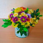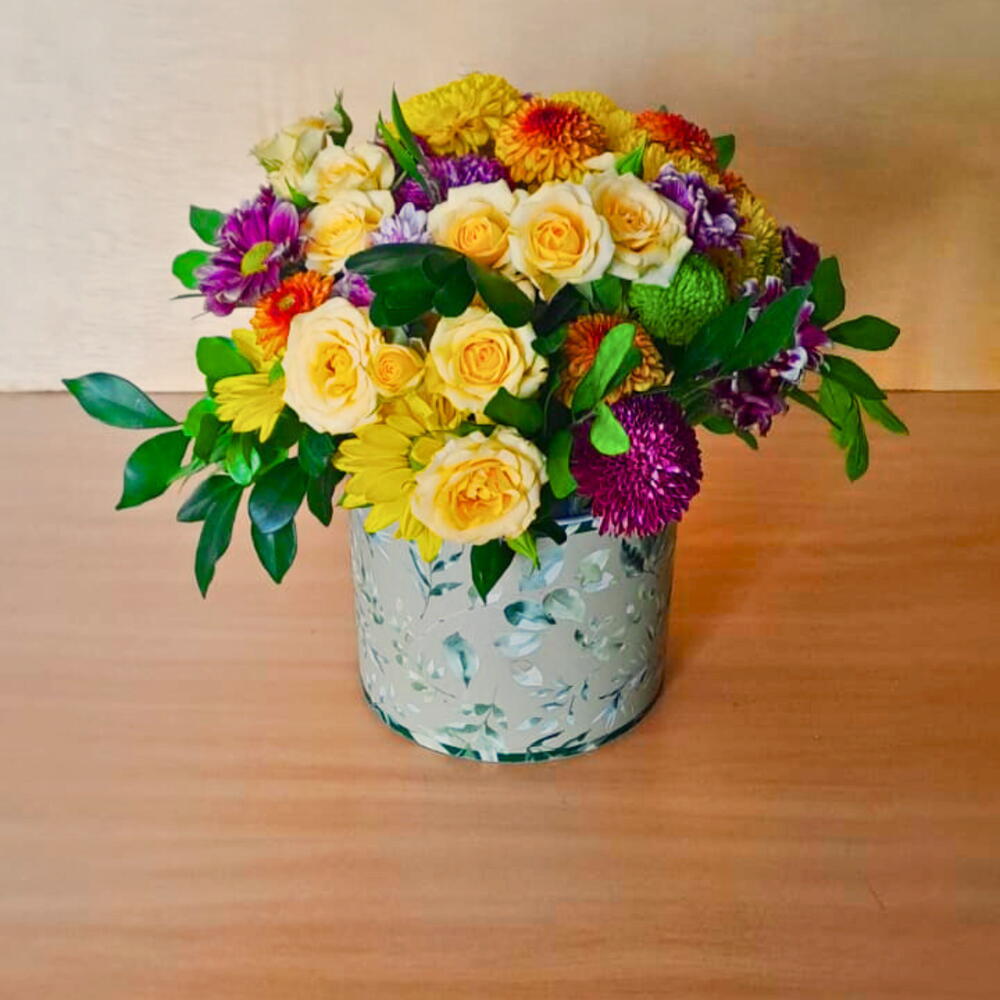 vaso - 1 un. folhagens - 1 un. arranjo com flores variadas naturais - 1 un.