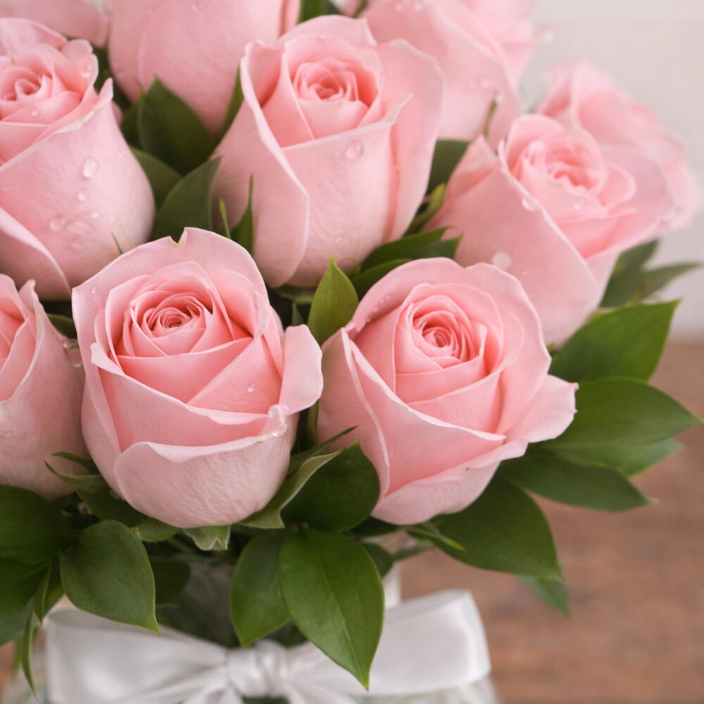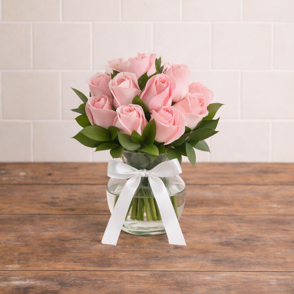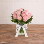 Arranjo de 10 Rosas Rosadas em Vaso de Vidro | La Floricultura