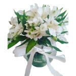 vaso de vidro - 1 un. laço - 1 un. astroméria - 1 un. cartão - 1 un.