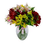 Arranjo de Astromelias com Vaso de Vidro