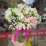 Este encantador arranjo de flores apresenta 10 unidades de astroméria branca e rosa cuidadosamente acomodadas em um vaso de vidro. As astromérias luxuriantes conferem um toque de elegância natural, enquanto o vaso de vidro acrescenta uma sofisticação subtil. Esta peça é perfeita para iluminar qualquer espaço e é um presente ideal para uma variedade de ocasiões.