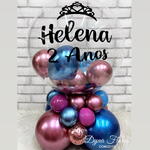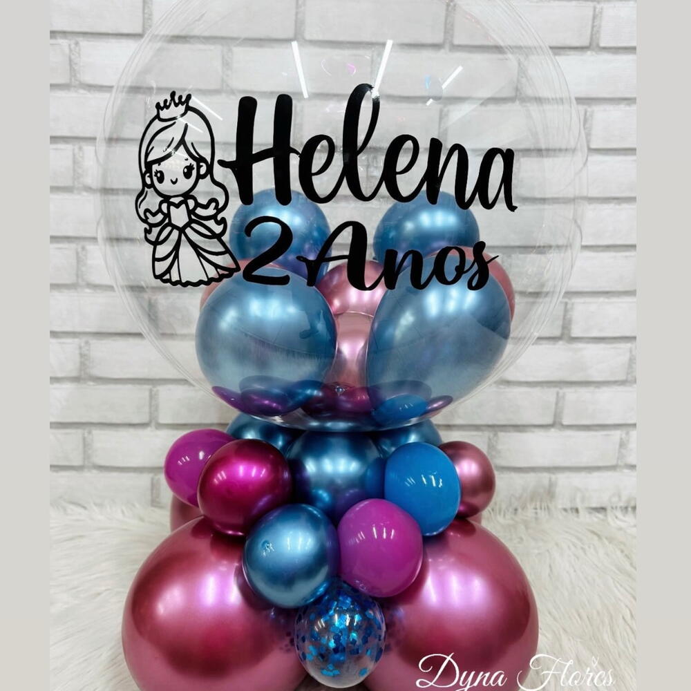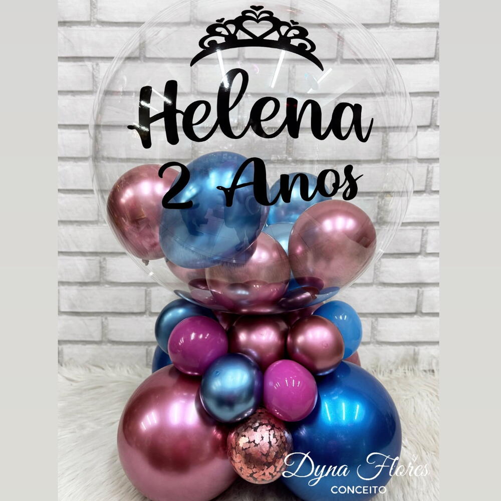Você pode escolher cores dos balões da base e dentro da bolha, montamos de acordo com sua escolha. Pode optar pelo bubble com mini balões dentro ou encapsulado. Personalização como você deseja e também pode escolher cor da letra. Enviar informações no Direct.