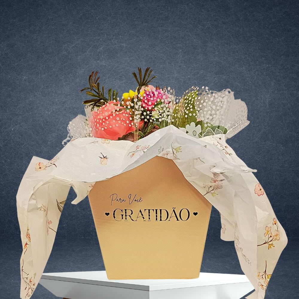 Um presente que fala por si só. Nossa linha de arranjos em cachepô foi desenhada para celebrar conquistas e expressar reconhecimento. Composto por flores artesanais de cera perfumada em tons suaves de pêssego, amarelo e rosa, este arranjo é a escolha ideal para ambientes profissionais ou para presentear amigos queridos. Diferente das flores comuns, estas mantêm sua beleza e perfume por tempo indeterminado. A embalagem personalizada com dizeres de Gratidão ou Sucesso transforma o ato de presentear em uma memória duradoura e sofisticada. Destaque: Ideal para mesas de escritório, recepções ou brindes especiais. Aroma: Fragrância delicada que promove sensação de bem-estar. Versatilidade: Use como item decorativo ou utilize as pétalas em difusores de calor.
