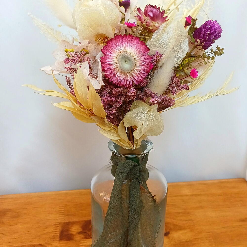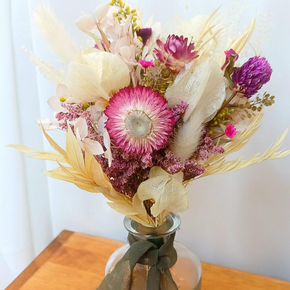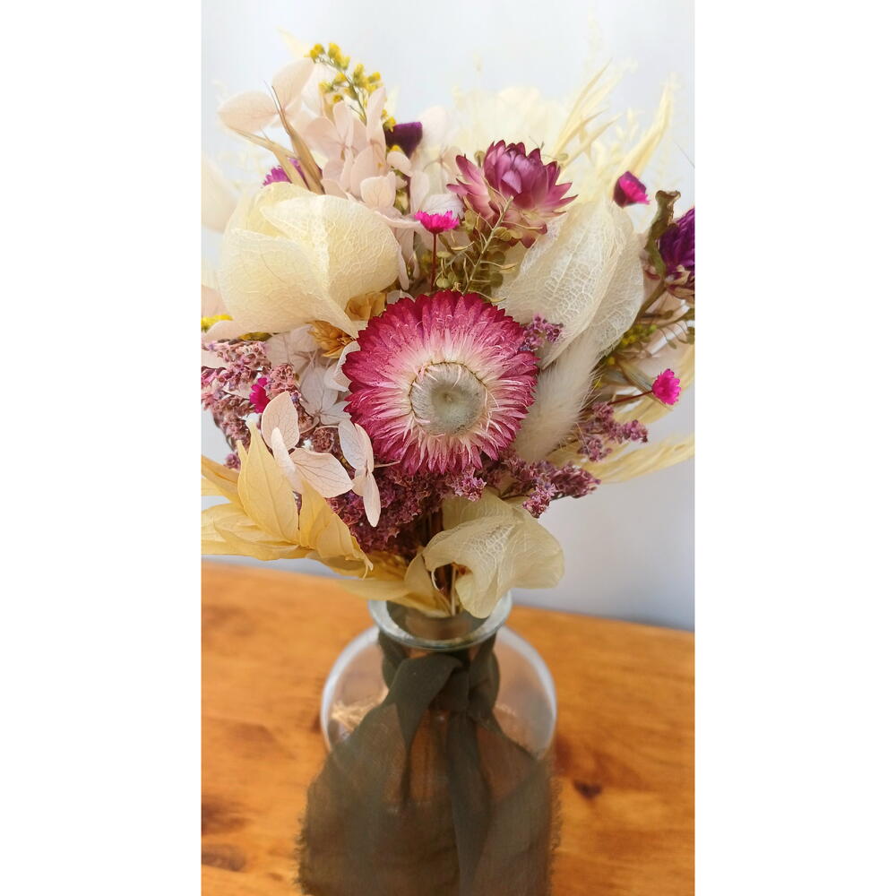 Este elegante arranjo de flores desidratadas é uma maneira clássica e sofisticada de adicionar um toque de beleza à sua casa ou escritório. Apresenta-se em um vaso clássico transparente, permitindo que as flores sejam o centro das atenções. Seu design atemporal torna-o a escolha perfeita para qualquer decoração, proporcionando um toque de cor duradouro e estilo aos seus espaços.