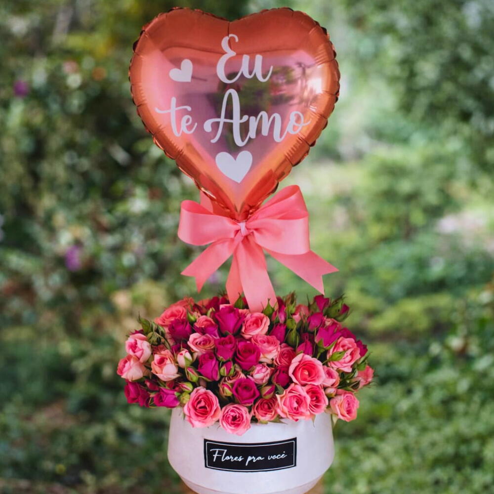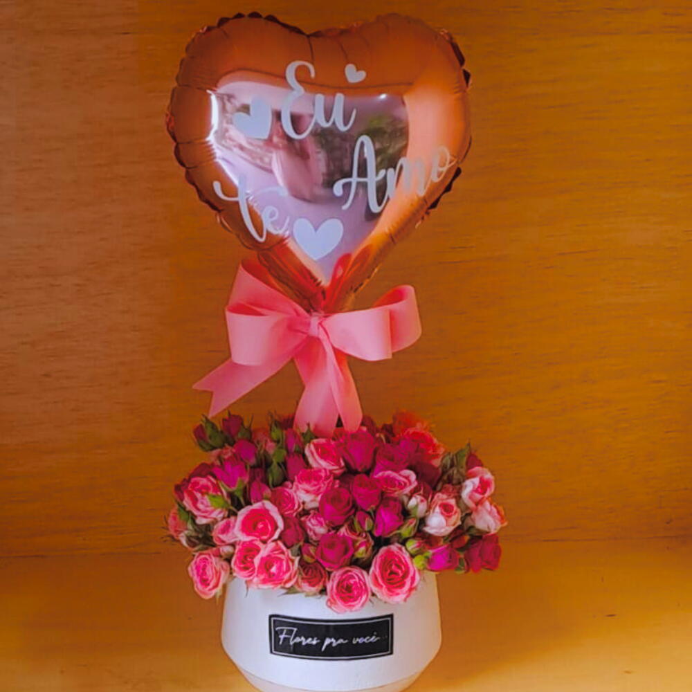 Arranjo Flores pra Você com Balão Eu Te Amo