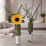 vaso de vidro com decoração rústica - 1 un. arranjo de girassol unitário permanente - 1 un.