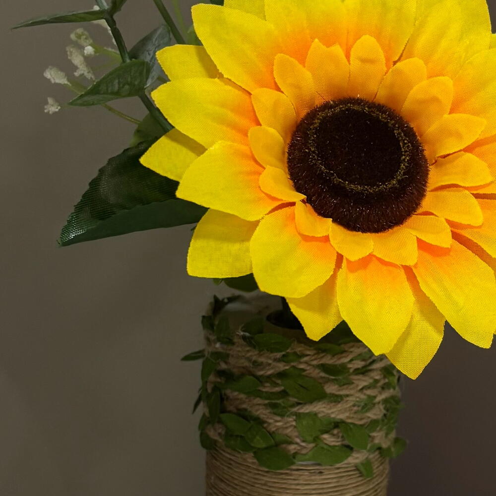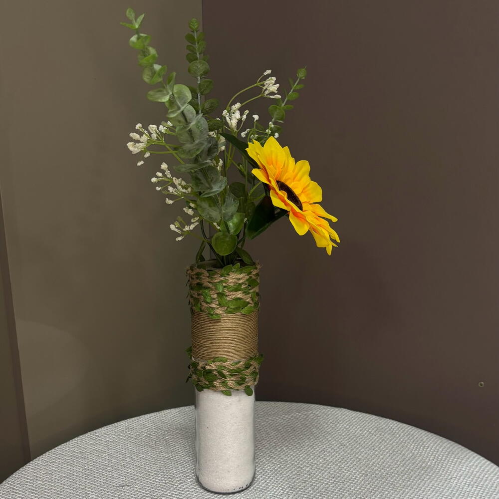 vaso de vidro com decoração rústica - 1 un. arranjo de girassol unitário permanente - 1 un.