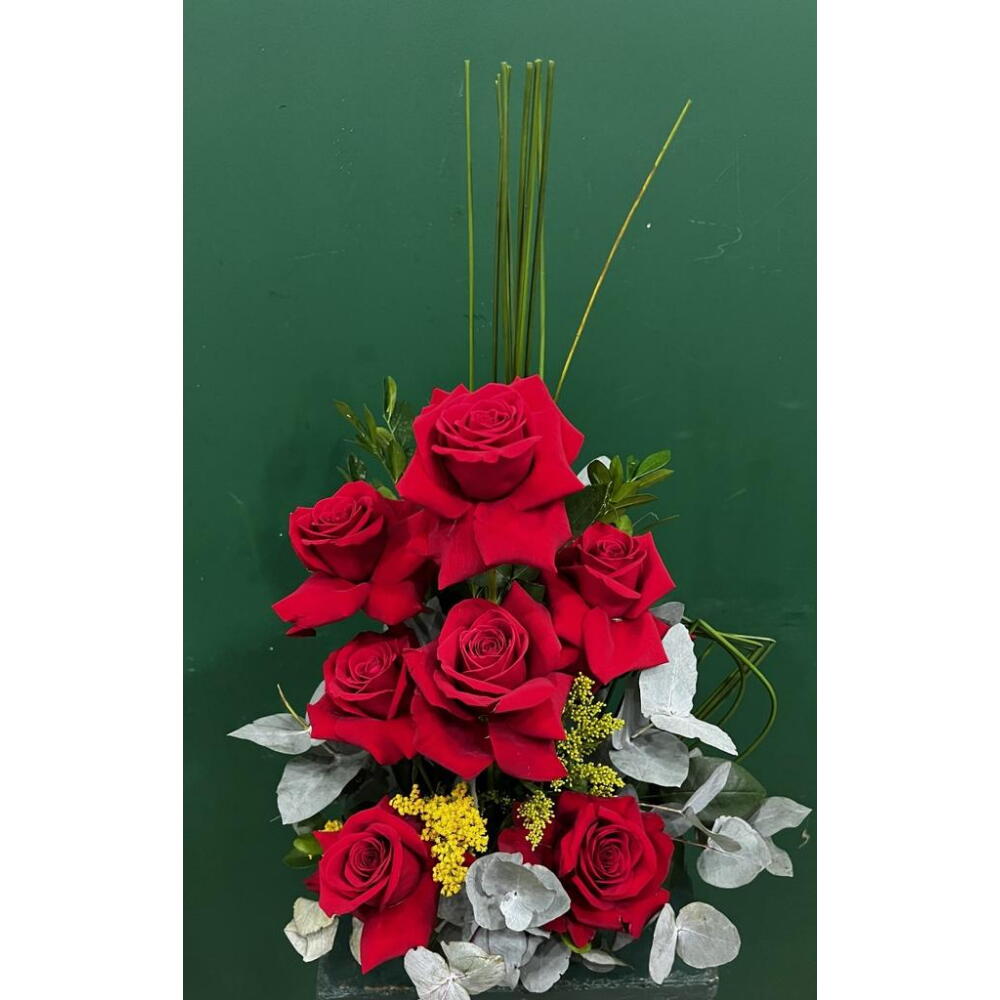 rosa colombianas - 7 un. tango e folhagem verde - 1 un.