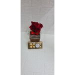 Descubra o prazer de dar e receber com este presente encantador, repleto de doçura e carinho. Com uma composição de cinco rosas vibrantes, uma bela folhagem, uma caixa elegante de MDF e um pacote com oito unidades irresistíveis de Ferrero Rocher, este é o presente perfeito para marcar qualquer ocasião especial. Encante os seus amados com esta mistura perfeita de romance e indulgência.