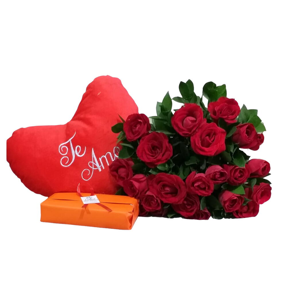Este kit presenteável é a maneira perfeita de expressar seu amor e apreciação. Composto por uma almofada em formato de coração que adicionará um toque de ternura ao seu presente; 12 rosas importadas, escolhidas a dedo por sua beleza e frescor; uma caixa com 8 deliciosos chocolates Ferrero Rocher que são ideais para satisfazer o paladar mais exigente. Acompanhando, temos ainda um arranjo de folhagens para dar um toque ainda mais especial e natural ao kit. Tudo isso embalado em uma linda caixa, delicadamente finalizado com um laço. Uma surpresa pronta para ser entregue que certamente encantará o coração de quem o receber.