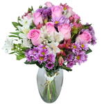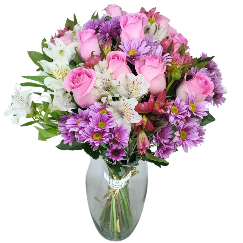 O Arranjo no Vaso - Rosa Suave, uma composição encantadora e cheia de delicadeza. Feito com rosas em tom rosa claro, flores do campo e astromélias brancas, esse arranjo transmite paz, afeto e um toque romântico que transforma qualquer ambiente. Acompanhado de um elegante vaso de vidro, é ideal para presentear em aniversários, agradecimentos, maternidade ou simplesmente para demonstrar carinho com classe e beleza.