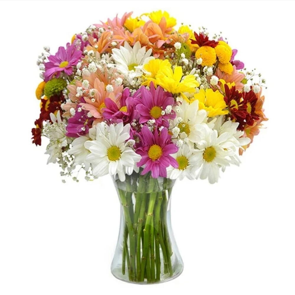 Esta é uma introdução encantadora à categoria Flores em vasos. Composta por um vaso sofisticado de vidro, que abriga uma única e delicada unidade de mosquitinho e uma unidade de margaridas coloridas, o produto transborda vivacidade e charme. As belas flores adicionam uma explosão de cor e alegria, tornando este item um presente perfeito ou um complemento requintado para qualquer decoração de interior.