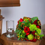 folhagens - 1 un. vaso de vidro - 1 un. buquê - 1 un.