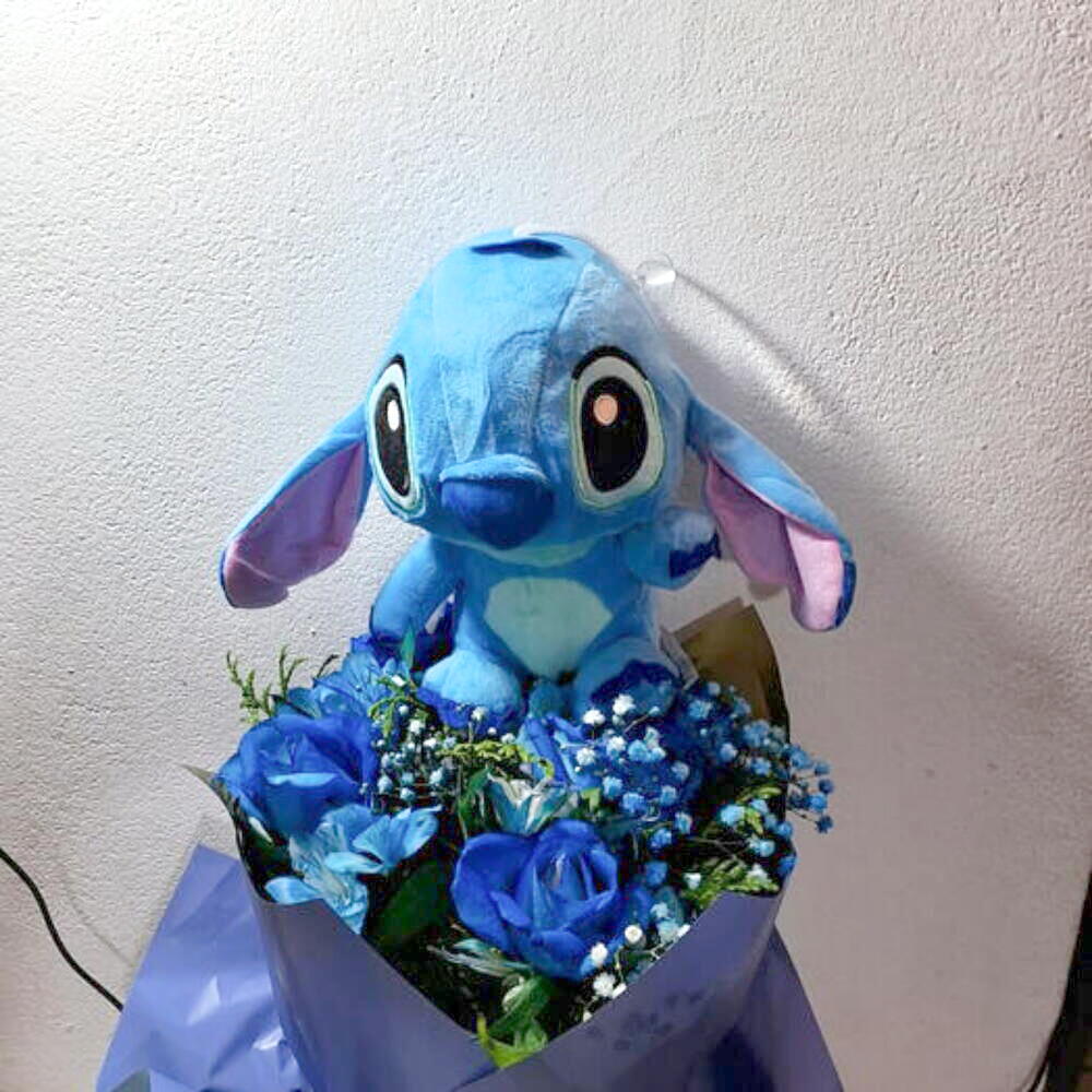 Belissimos Buque Flores Azul Natural Com Um Belissimos Pelucia Stiti