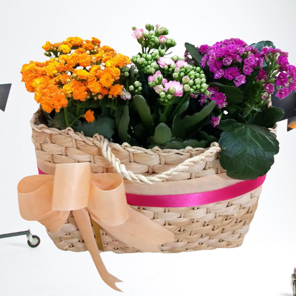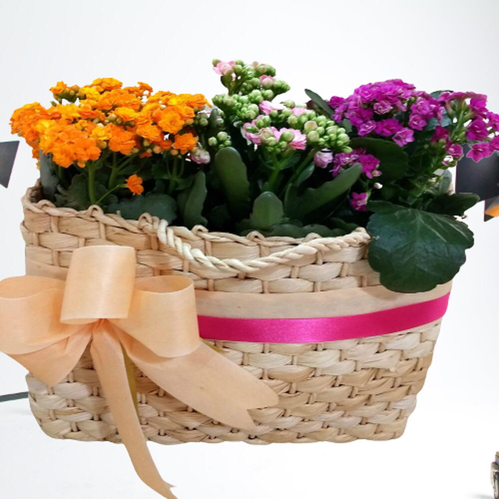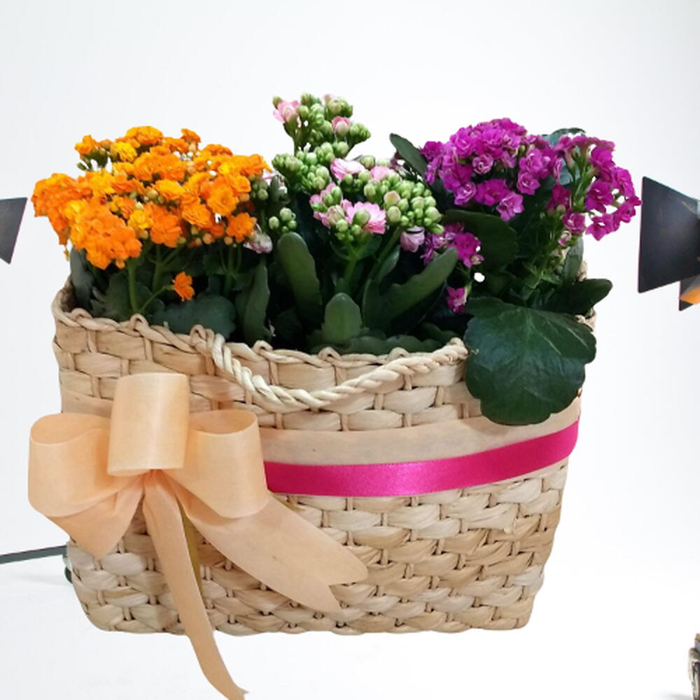 Esta encantadora cesta de flores é o presente perfeito. Composta por três magníficas kalandivas plantadas em uma bolsa de palha durável e elegante, esta cesta também vem com uma fita decorativa para adicionar um toque extra de charme e beleza. Seja para um aniversário, celebração ou apenas um presente de agradecimento, esta cesta de flores com certeza iluminará o dia de qualquer pessoa.