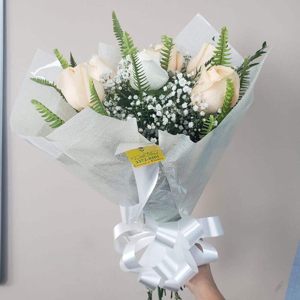 Este bouquet de rosas é uma explosão de cores vibrantes e fragrâncias frescas. Composto por seis rosas, cuja cor varia conforme a disponibilidade, e sete hastes de folhagens variadas. Uma combinação perfeita de beleza e elegância, este buquê é ideal para ocasiões especiais ou simplesmente para alegrar o dia de alguém. Cada elemento deste bouquet foi cuidadosamente selecionado para garantir a melhor qualidade e durabilidade. Uma escolha perfeita para expressar seus sentimentos mais sinceros.