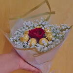 Bouquet com 1 Rosa e Bombons Ferrero Rocher