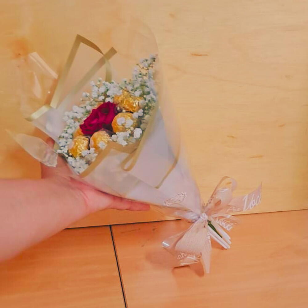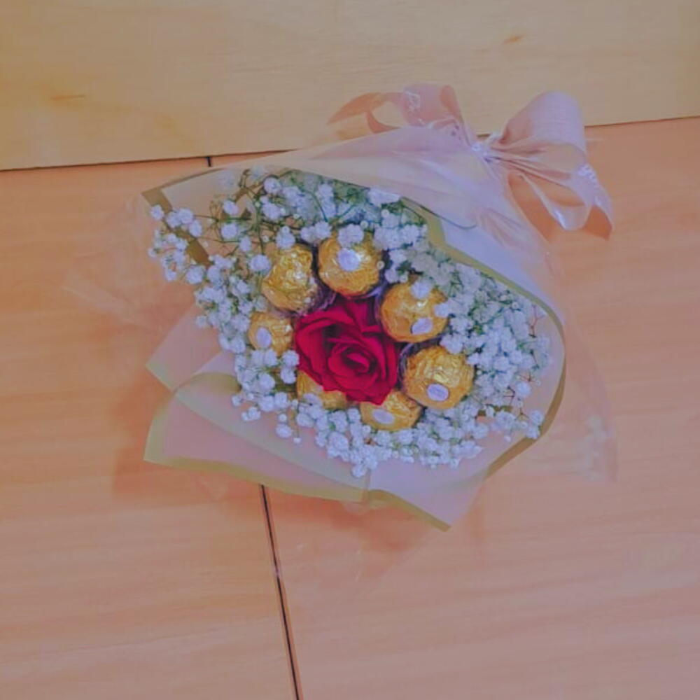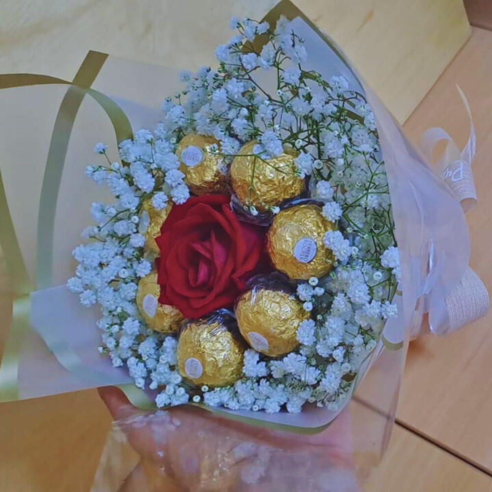 Bouquet com 1 Rosa e Bombons Ferrero Rocher