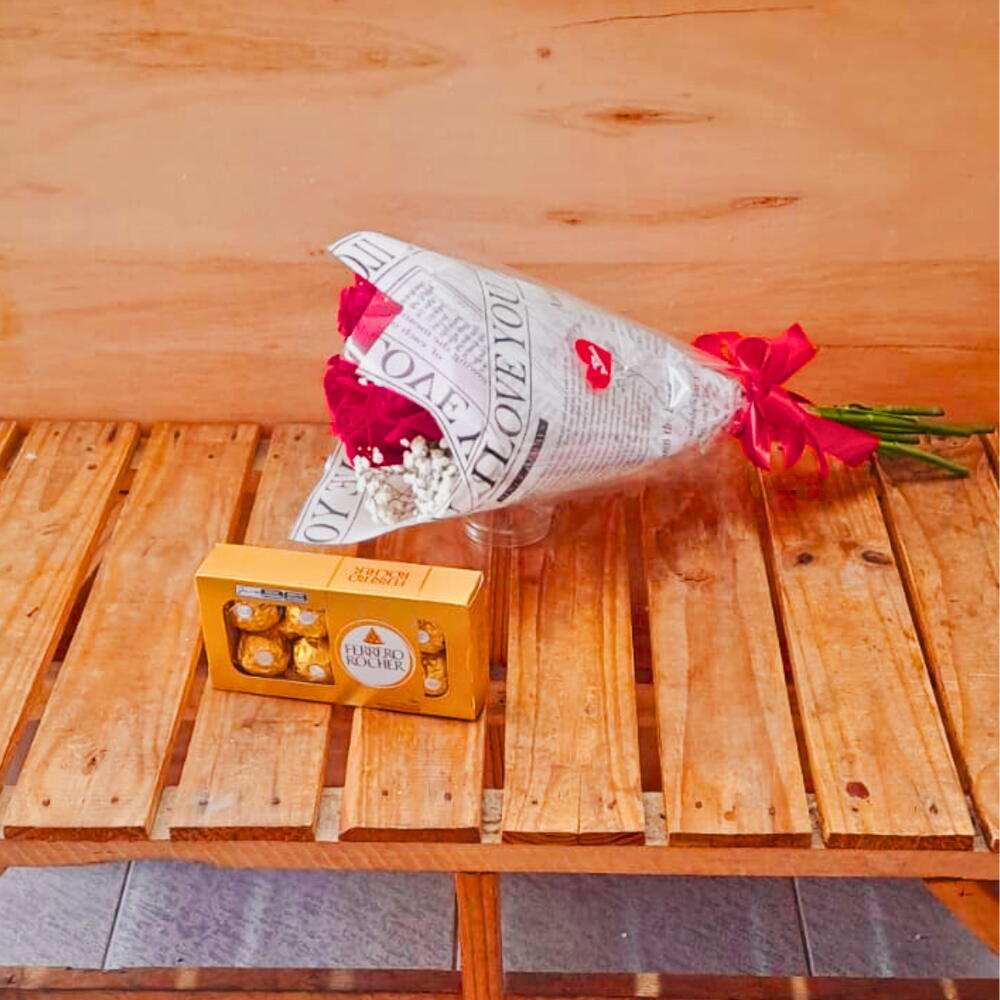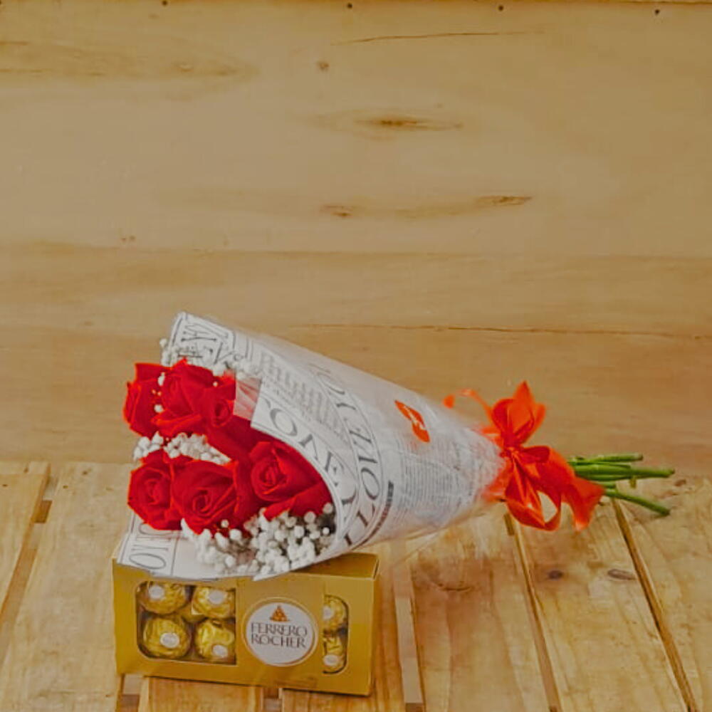 Encante quem você ama com este bouquet exclusivo que une a beleza das rosas vermelhas naturais à doçura irresistível do bombom Ferrero Rocher. Perfeito para ocasiões especiais como aniversários, Dia dos Namorados ou simplesmente para surpreender alguém querido com um gesto cheio de carinho e elegância. Detalhes do Produto: 6 rosas vermelhas: símbolo clássico de paixão e amor verdadeiro. Mosquitinhos brancos: delicado toque que realça a beleza das flores com suavidade. 1 Bombom Ferrero Rocher com 8 unidades: sabor sofisticado e textura crocante que derrete na boca. Medidas do bouquet: 40 cm de altura e 20 cm de diâmetro, ideal para presentear com estilo e requinte. Por que escolher nosso Bouquet com Rosas e Ferrero Rocher? Este bouquet é a combinação perfeita entre o romantismo das flores e a sofisticação do chocolate Ferrero Rocher. Um presente que vai além do visual, transmitindo emoções intensas e momentos inesquecíveis. Benefícios: Presente completo e elegante: flores naturais unidas a um chocolate premium. Decoração charmosa: decore qualquer ambiente com um toque de amor e requinte. Sabor irresistível: o Ferrero Rocher é perfeito para adoçar ainda mais o momento especial. Ideal para: Quem deseja surpreender com um presente que une beleza, sabor e sentimento. Seja para um gesto romântico ou para celebrar momentos felizes, este bouquet é a escolha certa para encantar. Garanta já o seu Bouquet com 6 Rosas com Ferrero Rocher e transforme o seu presente em uma experiência memorável! Todos os nossos bouquets são preparados com cuidado e carinho para garantir a melhor qualidade e