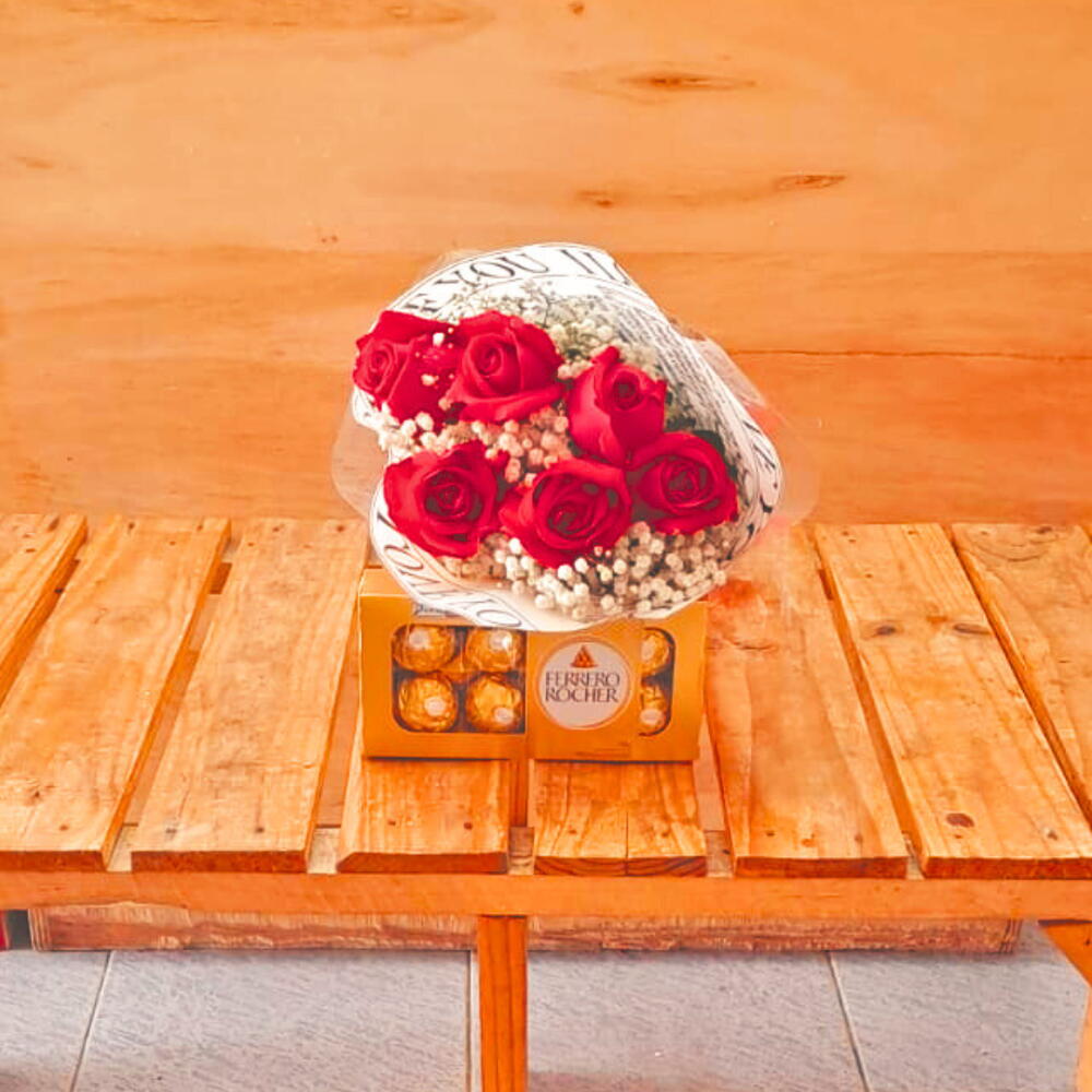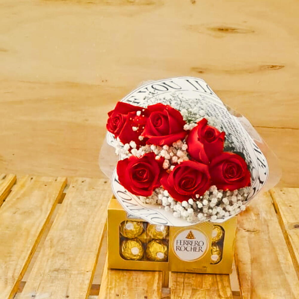 Bouquet com 6 Rosas com Ferrero Rocher