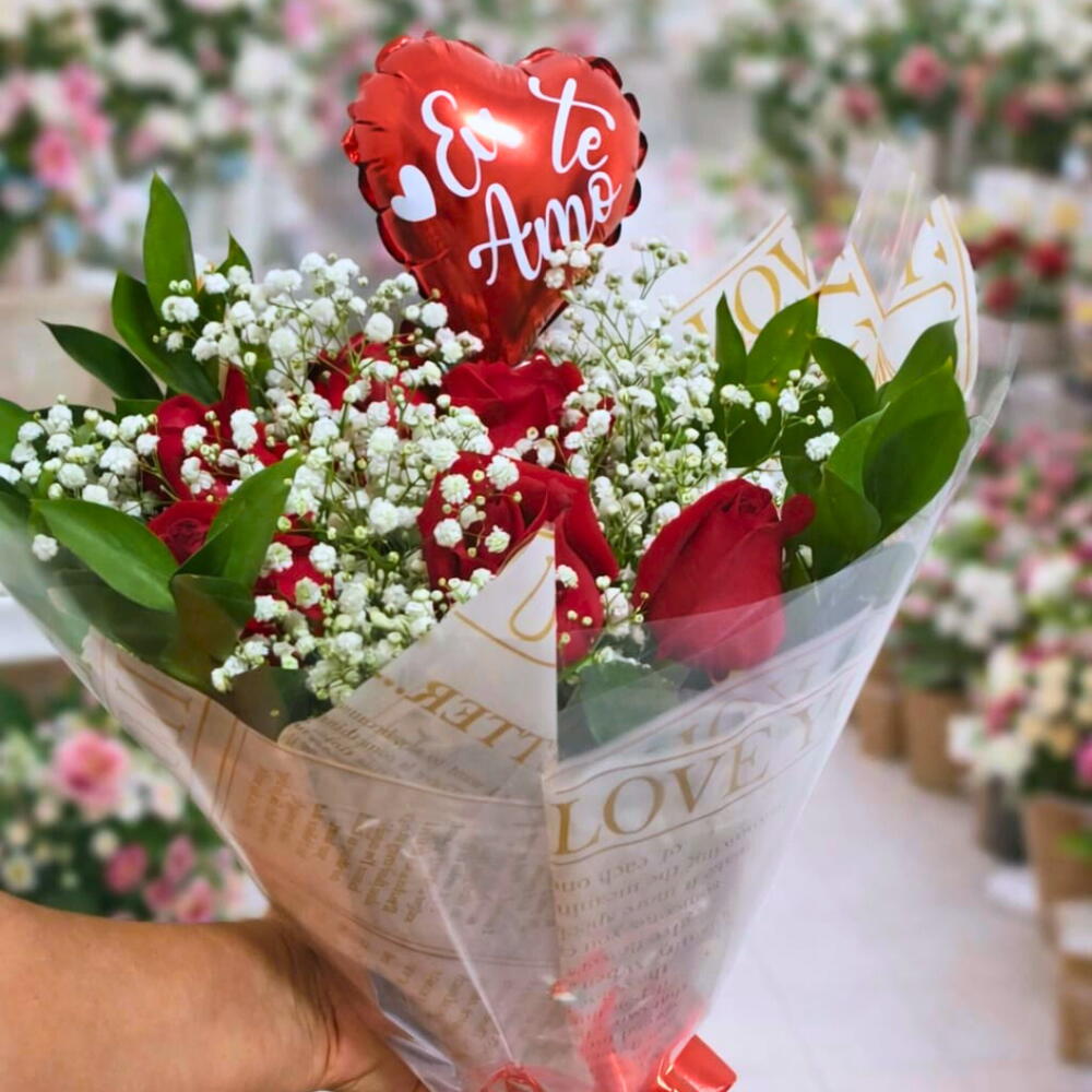 Bouquet com 6 Rosas e Coração Eu te amo – O Presente Perfeito para Demonstrar Amor Surpreenda quem você ama com o nosso Bouquet com 6 Rosas vermelhas acompanhado de um delicado coração com a mensagem Eu te amo. Um arranjo que une a beleza clássica das rosas com um toque romântico e especial, ideal para declarar seus sentimentos em qualquer ocasião. Características do Produto: 6 Rosas vermelhas frescas e vibrantes 1 maço de mosquitinho, que realça a delicadeza do bouquet Folhagens verdes que dão um toque natural e elegante 1 mini coração com a frase Eu te amo, para expressar seu carinho de forma única Altura aproximada: 45 cm Diâmetro aproximado: 20 cm Este bouquet é perfeito para presentear no Dia dos Namorados, aniversários, datas comemorativas ou simplesmente para surpreender aquela pessoa especial no dia a dia. A combinação das rosas vermelhas com o coração torna este presente um símbolo inesquecível de amor e paixão. Por que escolher o Bouquet com 6 Rosas e Coração Eu te amo? Presente com significado: Cada detalhe foi pensado para transmitir emoções e fortalecer laços afetivos. Arranjo elegante: Ideal para decorar ambientes com charme e romantismo. Flores frescas: Garantia de qualidade e beleza duradoura. Cuidados para preservar seu bouquet: Mantenha em local fresco, longe da luz solar direta. Regue as rosas com moderação para prolongar a vida das flores. Evite ambientes muito secos para conservar a hidratação. Garanta já o seu Bouquet com 6 Rosas e Coração Eu te amo e torne seus momentos ainda mais especiais. Compre agora e declare seu amor com um presente que emociona e encanta! Transforme sentimentos em flores – porque amor merece ser celebrado todos os dias!