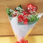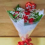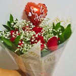 Bouquet com 6 Rosas e Coração Eu Te Amo