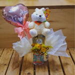 Bouquet de Caneca de Páscoa – Um Presente Completo e Encantador para Celebrar! Surpreenda nesta Páscoa com um presente delicado e cheio de charme, que combina fofura, sabor e beleza natural em uma composição única. O Bouquet de Caneca de Páscoa é perfeito para presentear quem você ama ou para deixar a sua celebração ainda mais especial. O que vem no Bouquet? 1 caneca de cerâmica com a mensagem Feliz Páscoa – ideal para reutilizar e decorar com estilo. 1 coelho de pelúcia de 20 cm – fofura certificada para todas as idades. 1 caixa com 4 bombons Ferrero Rocher – um toque sofisticado e irresistível de chocolate. Mini bouquet de flores do campo – fixadas em esponja floral, trazendo frescor e delicadeza. 1 balão metalizado Eu te amo. Dimensões do Bouquet Altura total: 45 cm Diâmetro: 20 cm Por que escolher o Bouquet de Caneca de Páscoa? Presente completo e versátil: reúne pelúcia, flores naturais e chocolate em uma única embalagem charmosa. Decoração prática e sustentável: a caneca reutilizável é um brinde que dura muito além da Páscoa. Detalhes que encantam: as flores do campo trazem um toque natural e alegre para qualquer ambiente. Sabor refinado: os bombons Ferrero Rocher são a garantia de um momento doce e inesquecível. Celebre a Páscoa com um presente que transmite amor, carinho e sofisticação. Garanta já o seu Bouquet de Caneca de Páscoa e faça desta data uma lembrança cheia de significado! Não deixe para depois! Surpreenda quem você ama com um presente que une fofura, beleza e sabor em cada detalhe.