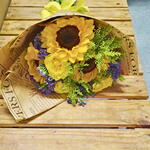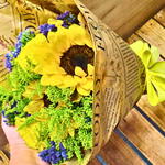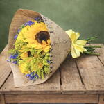 Bouquet de Girassois com Rosas Amarelas e Estatice