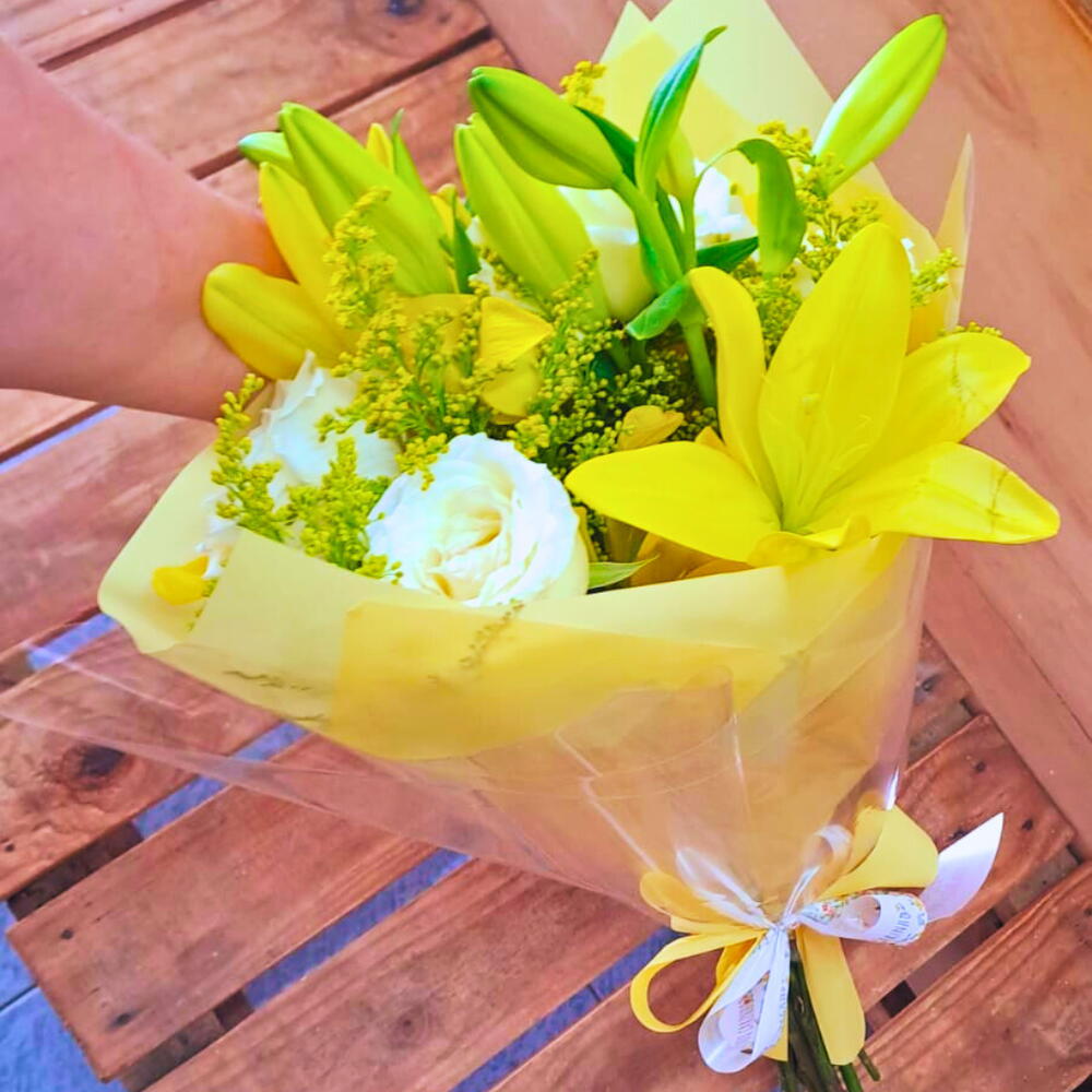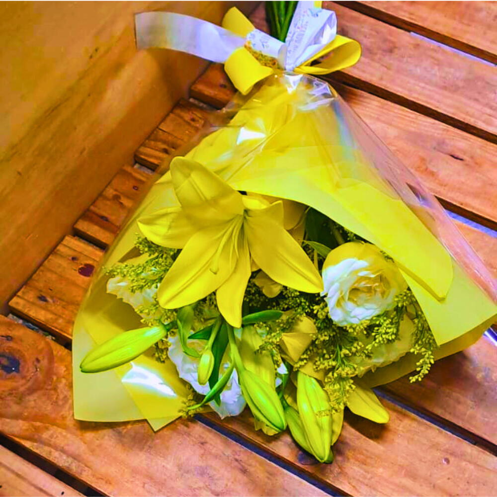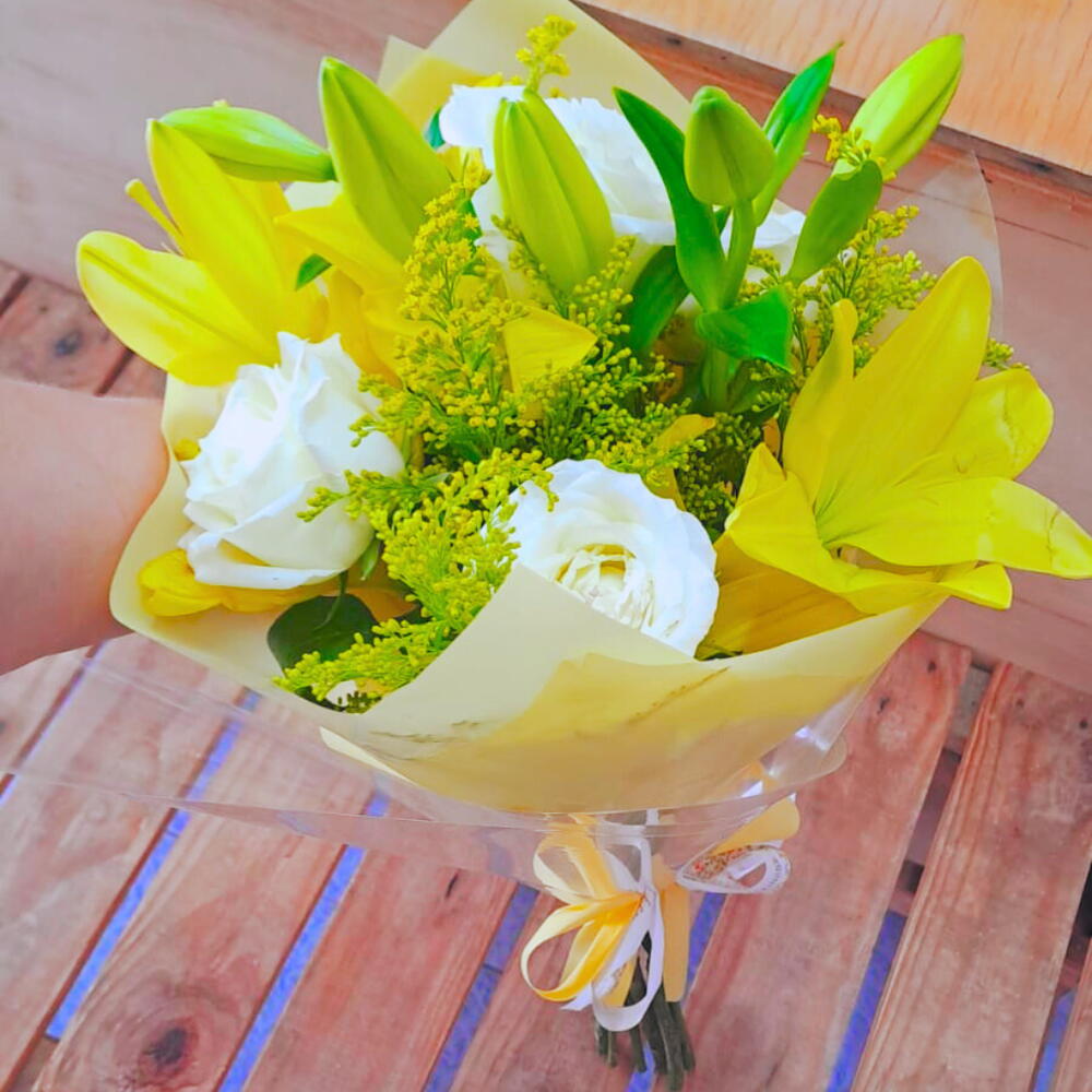 Bouquet de Lirio Amarelo com Rosas Brancas