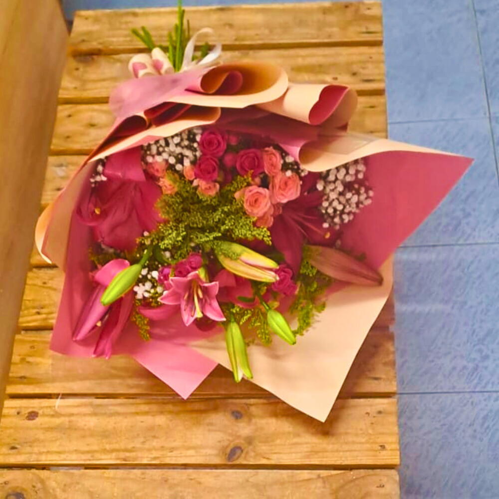 Bouquet de Lirios Rosas com Mini Rosas Pink e Rosa Claro