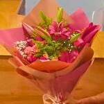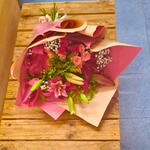 maço de tango - 1 un. hastes de mini rosa clara - 4 un. hastes de mini rosa pink - 4 un. hastes de lírio rosa escuro - 2 un. hastes de mosquitinho - 2 un.