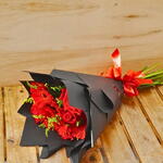rosa vermelhas - 6 un. gérbera vermelhas - 6 un. maço de tango - 1 un.