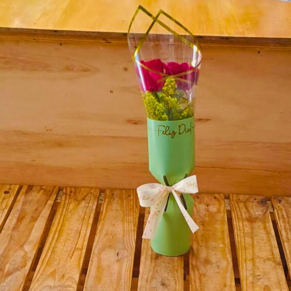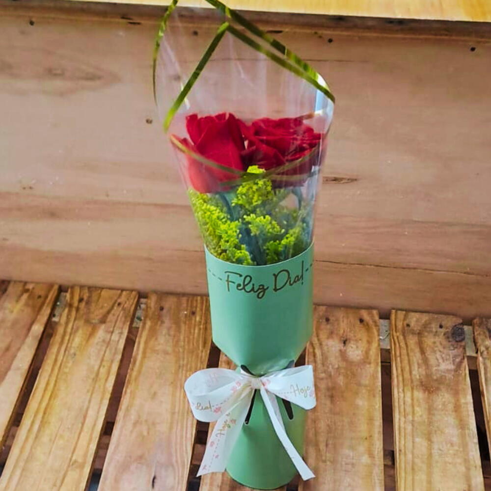 Bouquet Feliz Dia com Rosas Vermelhas – Um Presente Cheio de Amor e Carinho Celebre momentos especiais com o Bouquet Feliz Dia com rosas vermelhas, um arranjo delicado e cheio de significado, ideal para surpreender quem você ama e tornar qualquer ocasião inesquecível. Detalhes do Produto 2 rosas vermelhas: símbolo eterno de paixão, amor e elegância. 2 hastes de tango: adicionam sofisticação e uma textura única ao bouquet. 1 cápsula Feliz Dia: um toque personalizado para transmitir seus melhores desejos. Altura aproximada: 40 cm Diâmetro aproximado: 15 cm Por que escolher este bouquet? Este arranjo foi pensado para expressar carinho e sentimentos profundos com simplicidade e beleza. As rosas vermelhas representam a intensidade do amor, enquanto as hastes de tango complementam com elegância e charme. A cápsula Feliz Dia torna o presente ainda mais especial, perfeito para comemorar aniversários, datas comemorativas ou simplesmente para alegrar o dia de alguém querido. Cuidados para manter seu bouquet sempre fresco Mantenha em local fresco e ventilado, longe da luz solar direta. Troque a água do vaso diariamente para prolongar a vida das flores. Evite ambientes muito quentes ou úmidos para conservar a beleza do arranjo. Garanta já o seu Bouquet Feliz Dia com rosas vermelhas e demonstre todo seu afeto com um presente que encanta pela simplicidade e pela emoção!