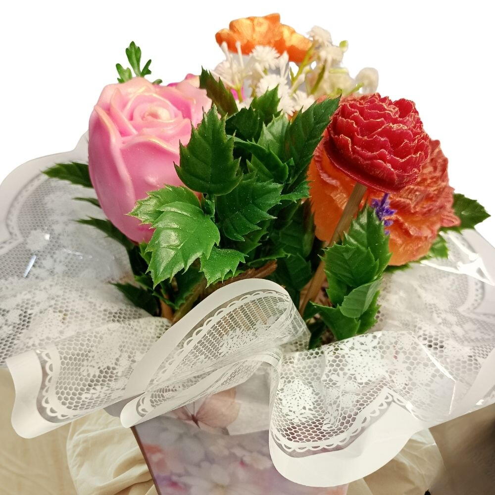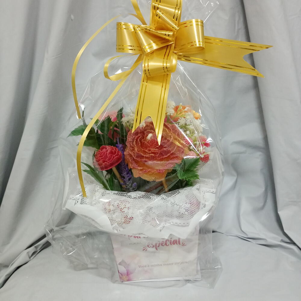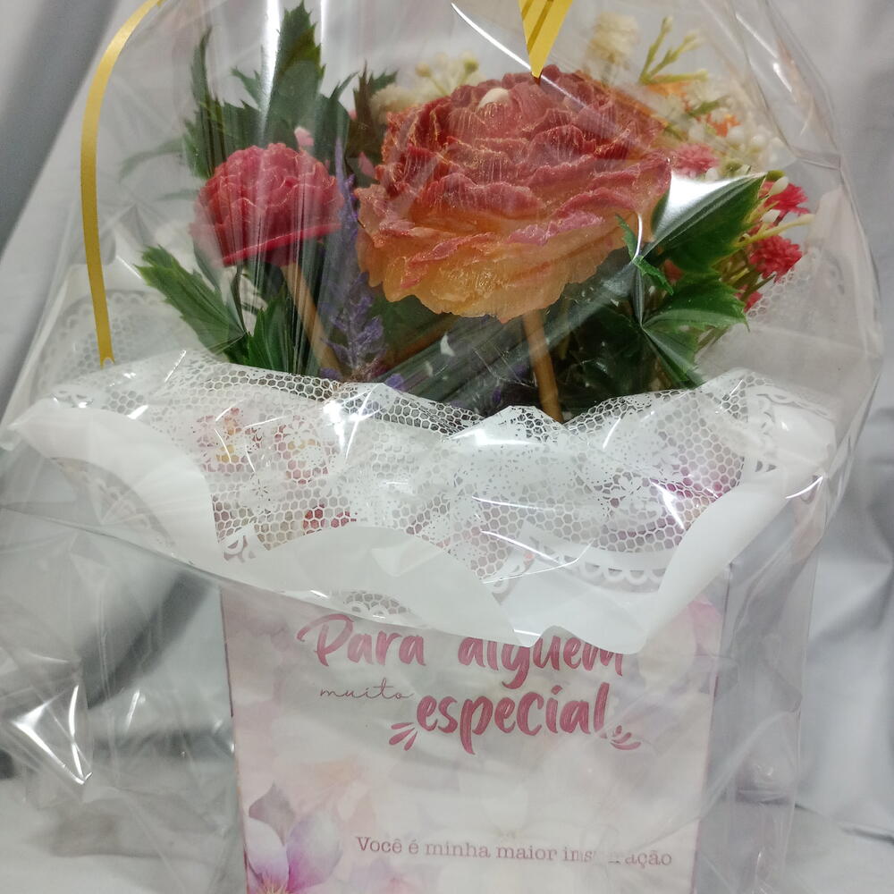 Descrição: Beleza que permanece. Este arranjo foi desenvolvido para quem busca um presente sofisticado, artesanal e funcional. Especificações Técnicas: Composição: Blend de cera de coco (sustentável e com melhor dispersão de aroma). Perfume: Essência premium importada (notas florais intensas). Pavio: 100% algodão para uma chama estável. Design: Mix de velas em formato de rosas e flores silvestres, intercaladas com arranjos permanentes para um visual sempre impecável. Apresentação: Box decorativa com mensagem: PARA ALGUÉM ESPECIAL você é minha maior inspiração, involucro transparente, laço dourado, pronta para presentear.