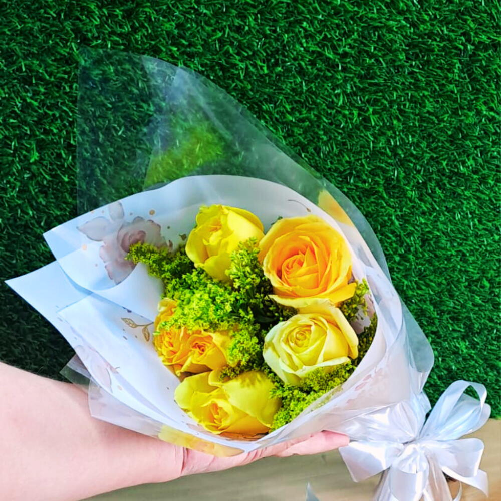 Surpreenda quem você ama com o nosso Bouquet Rosas Amarelas, um arranjo delicado e vibrante que transmite alegria, amizade e carinho em cada detalhe. O que o bouquet contém? 6 rosas amarelas de frescor e beleza incomparáveis 1 tango que complementa com elegância e charme Altura aproximada de 40 cm e diâmetro de 20 cm Por que escolher o Bouquet Rosas Amarelas? Expressa sentimentos de alegria e otimismo, perfeito para celebrar momentos especiais ou simplesmente para iluminar o dia de alguém querido. Ideal para diversas ocasiões: aniversário, agradecimento, amizade, ou para surpreender quem você ama com um gesto cheio de significado. Arranjo compacto e sofisticado, fácil de transportar e que valoriza a delicadeza das rosas amarelas. Características que fazem a diferença: Rosas frescas e selecionadas para garantir durabilidade e beleza. Combinação harmoniosa com o tango, que traz textura e sofisticação ao bouquet. Medidas perfeitas para decorar ambientes ou presentear com elegância. Garanta já o seu Bouquet Rosas Amarelas e transforme qualquer momento em uma celebração de cores e emoções! Compre agora e presenteie com carinho e estilo!