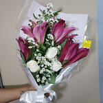 Este lindo buquê é cuidadosamente composto por 3 rosas brancas elegantes, representando pureza e amor sincero, e 3 lírios, cuja cor disponível será escolhida com todo o cuidado no dia do seu pedido. Cada pétala é escolhida para trazer um toque de sofisticação e exclusividade à sua ocasião. Um presente memorável de beleza duradoura e um tributo verdadeiro ao amor e à apreciação.