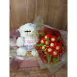 embalagem - 1 un. urso branco e rosa - 1 un. buquê de ferreiro rocher 8 uni - 1 un.