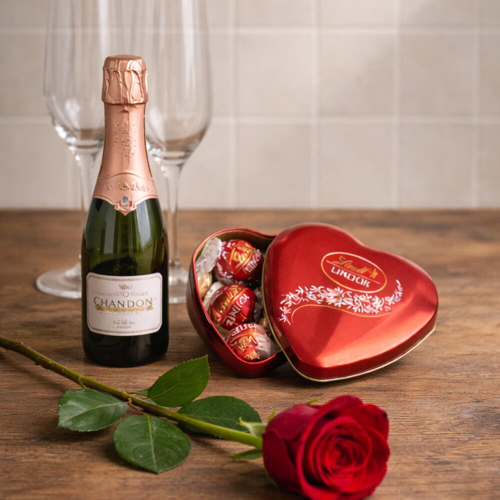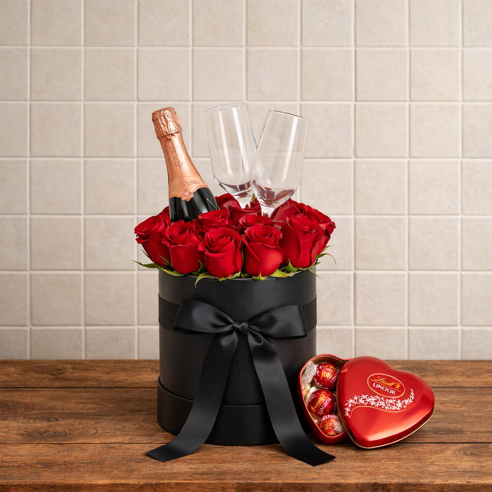 Box com Mini Chandon, 2 Taças e Trufas Lindt | La Floricultura