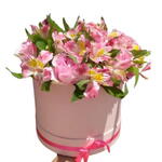 Surpreenda com a elegância do nosso Box White, acompanhado por 7 rosas rosadas, 5 astromélias rosadas e 3 ruscus. Envie amor e carinho com um cartão impresso incluso. A combinação perfeita para encantar quem você ama!