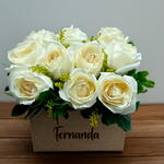 folhagens - 1 un. rosa brancas - 1 un. cachepô mdf - 1 un.