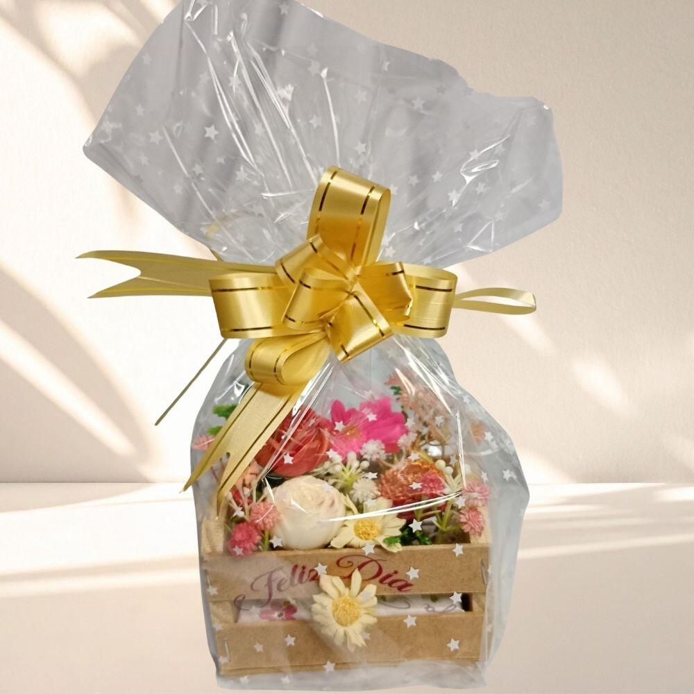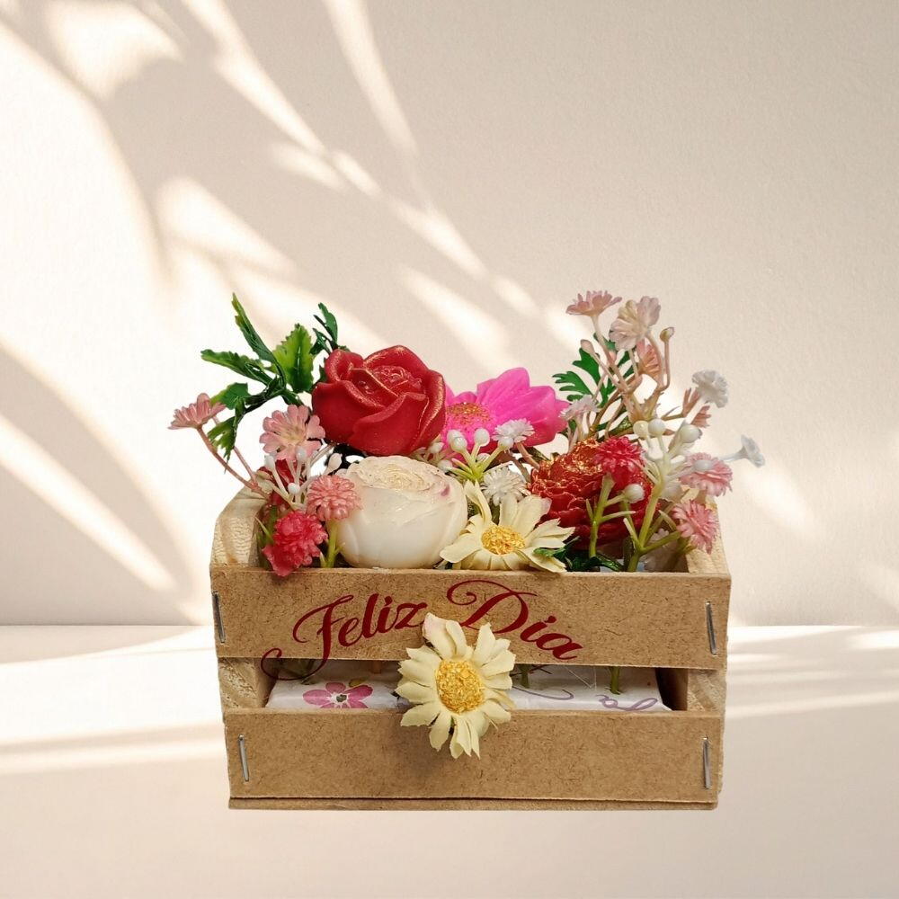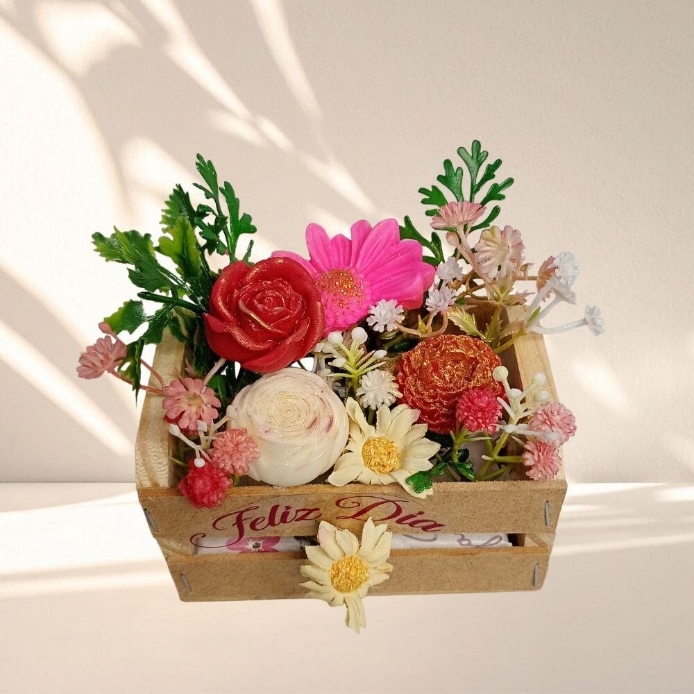 Um jardim de afeto dentro de um engradado! O Engradado Feliz Dia une o charme das mini flores com o toque especial de um aromatizador de ambientes. Um presente pensado para despertar sorrisos e criar memórias perfumadas.