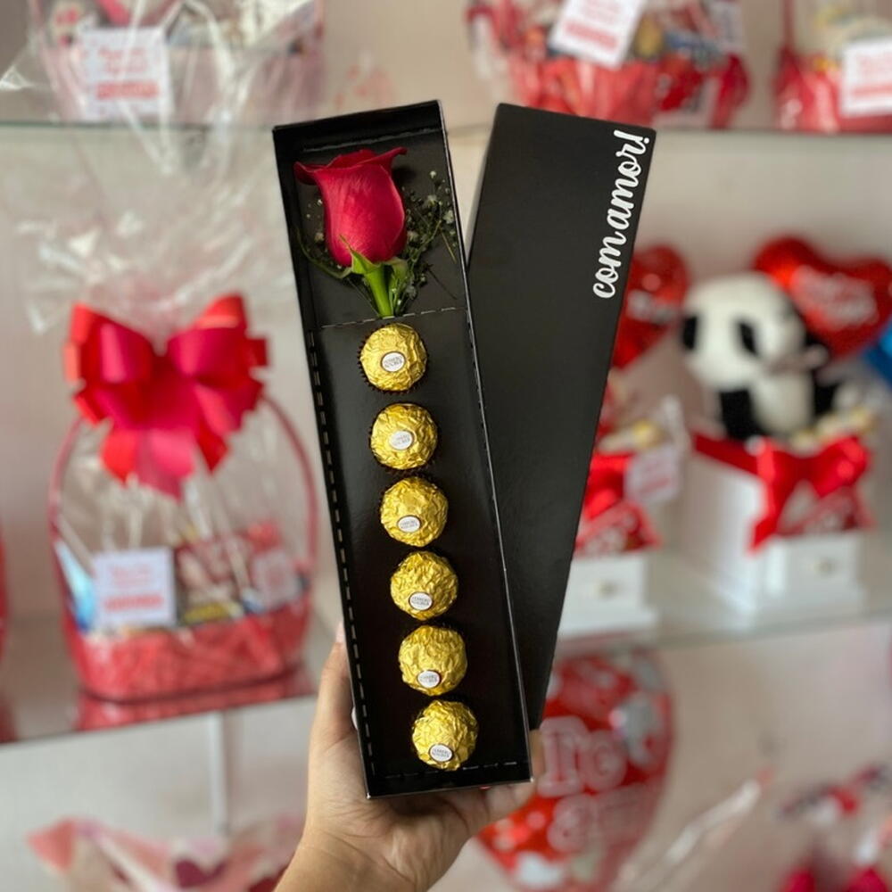 Delicadeza e sabor em um só presente! Acompanha uma rosa natural e 6 Ferrero Rocher, cuidadosamente dispostos em uma caixa elegante. Ideal para surpreender com um toque de romantismo!