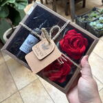 embalagem personalizada - 1 un. rosa eterna (artificial) - 2 un. home spray alecrim - 1 un.