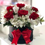 Este belo Box de flores é composto por 6 rosas colombianas, reconhecidas mundialmente pela sua beleza incomparável, que são delicadamente envolvidas pelo brilho delicado de um laço de cetim para um toque extra de glamour. Acompanhando essas protagonistas, encontramos 8 astromérias, que conferem um toque colorido e vibrante ao conjunto. Todos esses elementos repousam numa espuma floral, que garante a frescura e longevidade das flores, por sua vez acondicionadas num charmoso box redondo. Um presente verdadeiramente especial para qualquer ocasião.