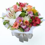 Este buquê é uma bela composição de flores mistas, que combina cores e texturas para criar um visual verdadeiramente deslumbrante. Cada buquê é elegantemente acentuado com uma unidade de folhagens especiais, adicionando justaposição e equilíbrio à peça. Para um acabamento final sofisticado, o buquê é apresentado em uma embalagem delicada, adornada com um laço de cetim. Que seja o presente perfeito para um ente querido ou acento decorativo ideal para o seu espaço pessoal.