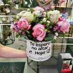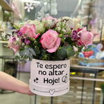 🌹✨ Box Floral – Te espero no altar hoje! ✨🌹 Um presente romântico e inesquecível para marcar um dos dias mais especiais da vida a dois. Este box exclusivo traz a delicadeza das rosas em tons de rosa e branco, combinadas com flores campestres e folhagens, criando um arranjo sofisticado e cheio de emoção. 💍 Diferenciais: ✔ Design exclusivo com a mensagem “Te espero no altar hoje!” ✔ Flores frescas e selecionadas com carinho ✔ Combinação romântica de cores que simbolizam amor, pureza e cumplicidade ✔ Presente perfeito para pedidos de casamento, surpresa no grande dia ou momentos de celebração do amor 💝 Mais do que flores, é uma declaração de amor que eterniza lembranças e emociona em cada detalhe. 👉 Ideal para surpreender no dia do casamento ou noivado, tornando o momento ainda mais inesquecível.